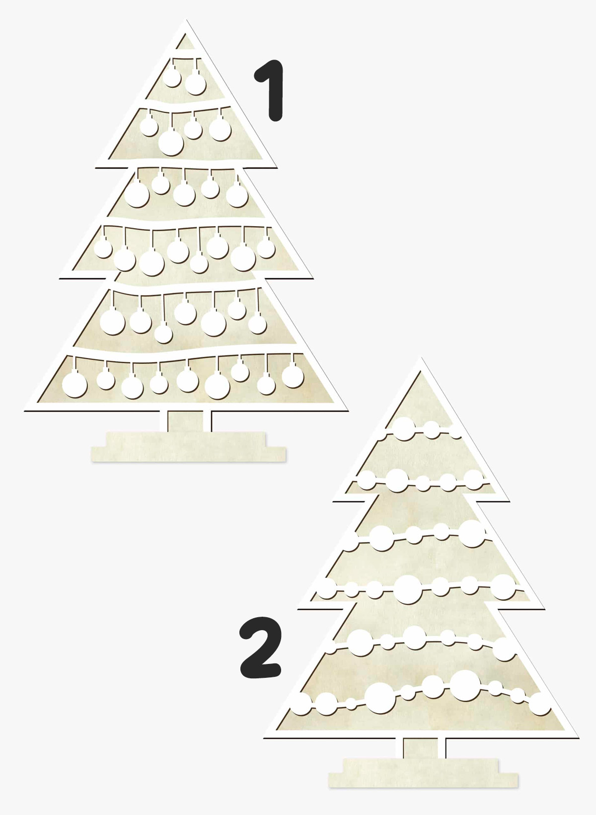 Se puede elegir que el dibujo en madera blanca esté por solo un lado del árbol, o por ambas caras.