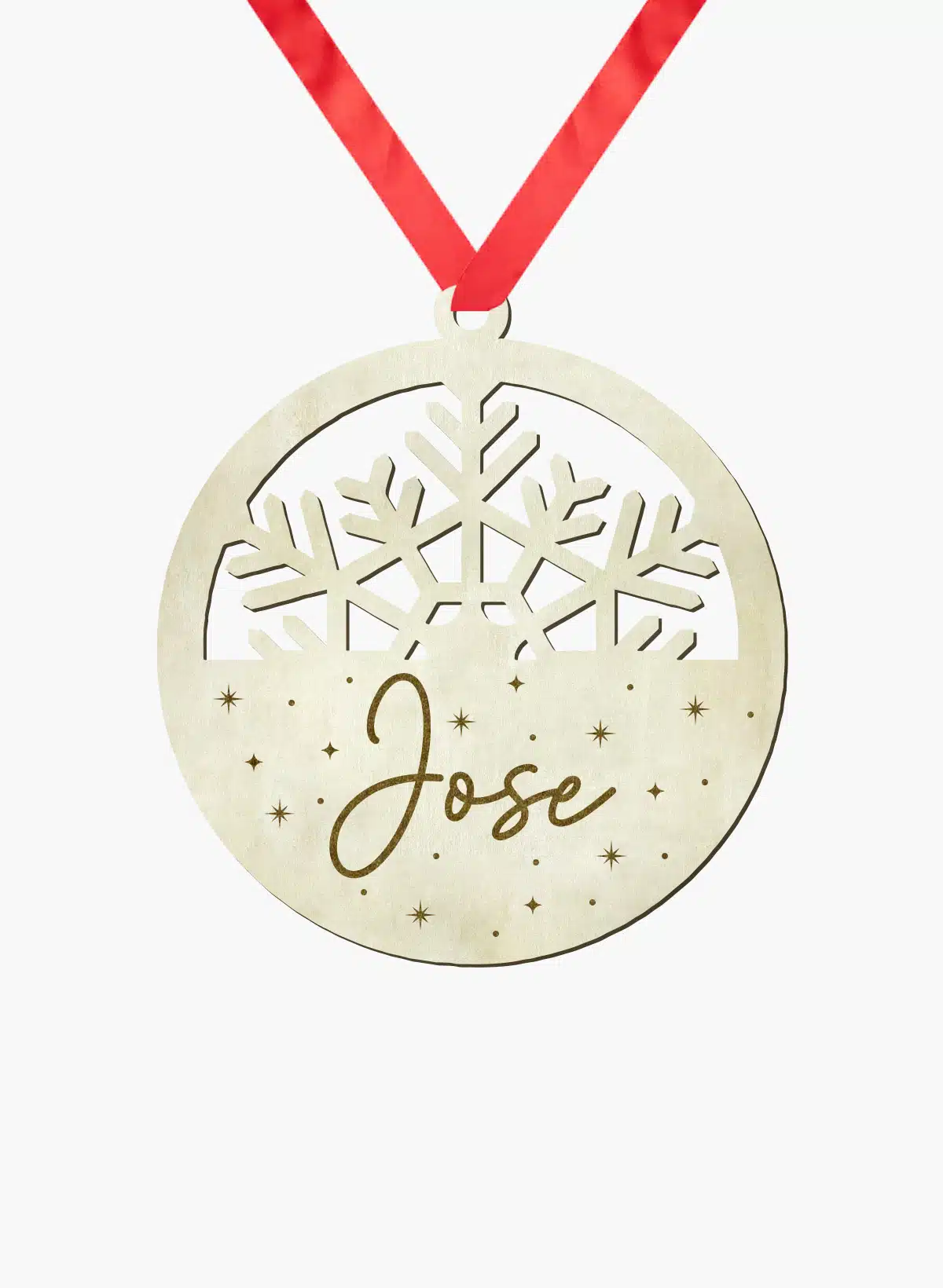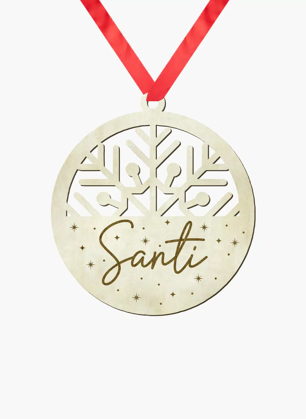 El pedido viene con la bola de navidad en madera personalizada, un cordel de cinta roja para que lo puedas colgar en tu árbol y empaquetado individualmente en una bolsa tipo celofán.