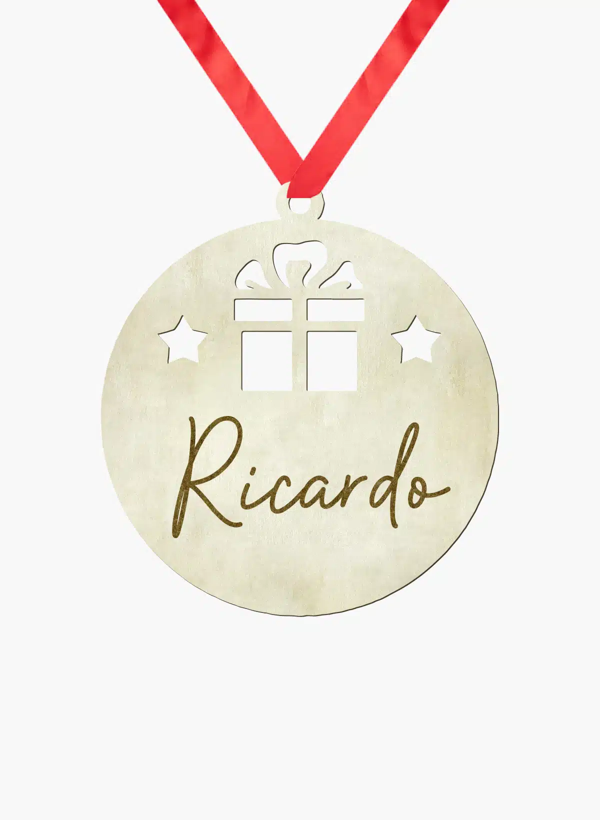 El pedido viene con la bola de navidad en madera personalizada, un cordel de cinta roja para que lo puedas colgar en tu árbol y empaquetado individualmente en una bolsa tipo celofán.
