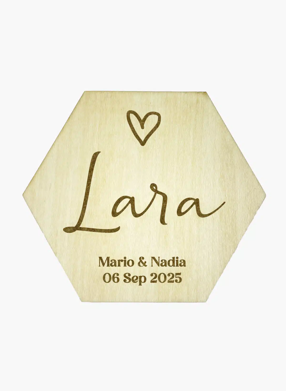 Puedes personalizar los imanes con el nombre de tus invitados grabado en la madera, junto con vuestros nombres o iniciales y la fecha del enlace.