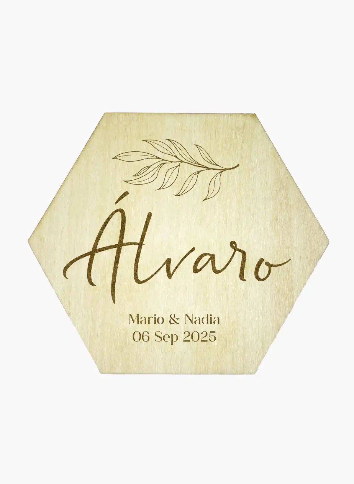 Puedes personalizar los imanes con el nombre de tus invitados grabado en la madera, junto con vuestros nombres o iniciales y la fecha del enlace.