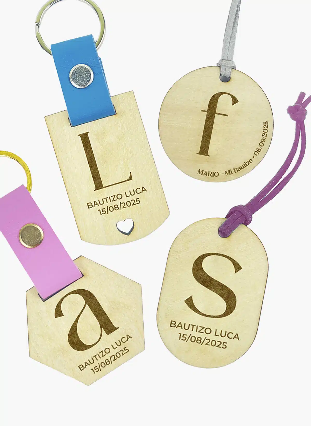 Puedes personalizar los imanes con el nombre de tu hijo/a grabado en la madera, junto con el tipo de evento (bautizo, comunión, cumpleaños…) y la fecha del evento.