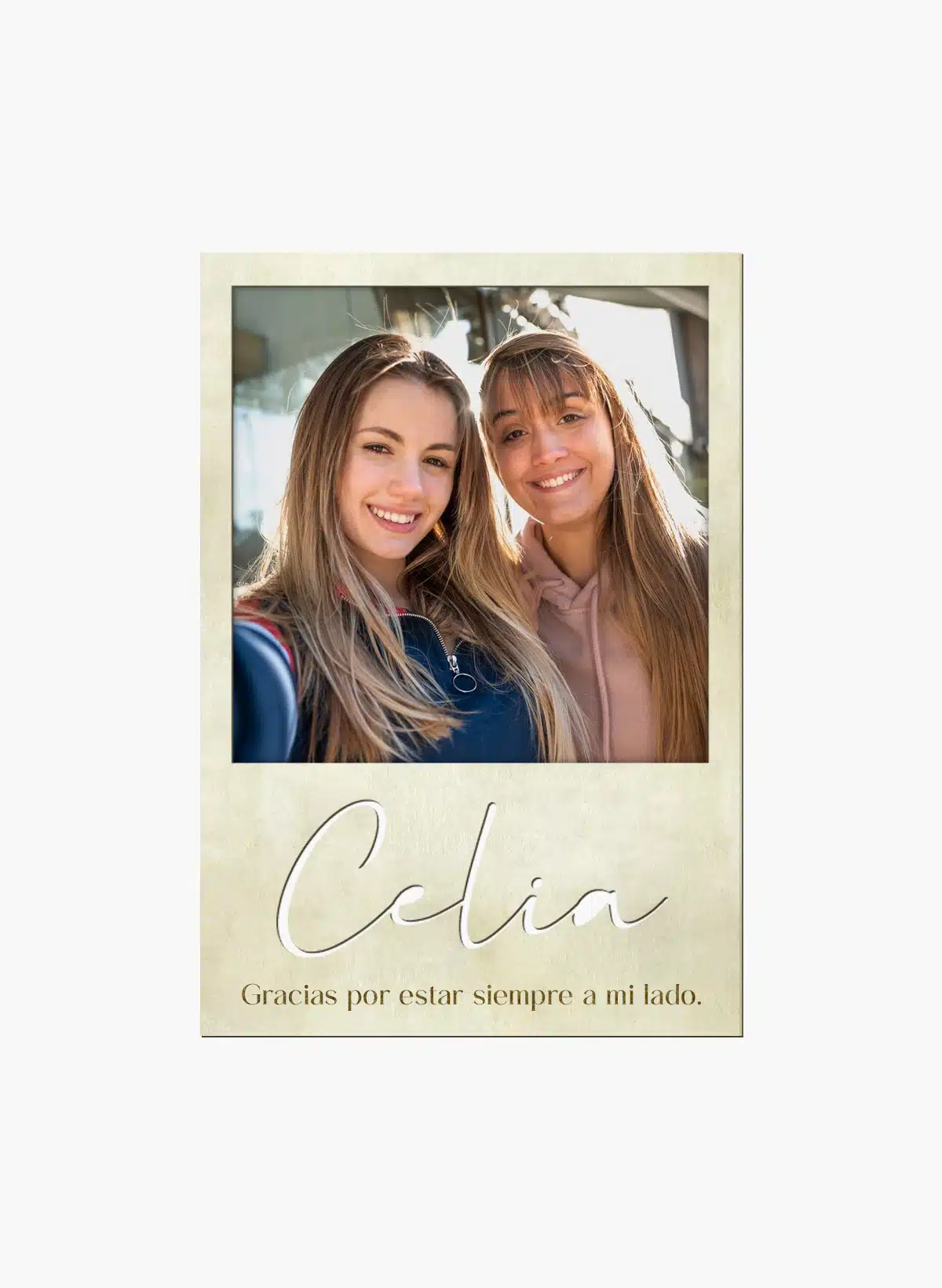 Junto con tu marco de fotos, mandamos dos patitas de madera para colocar en los laterales de tu marco, para que se sostenga de pie en cualquier lado.